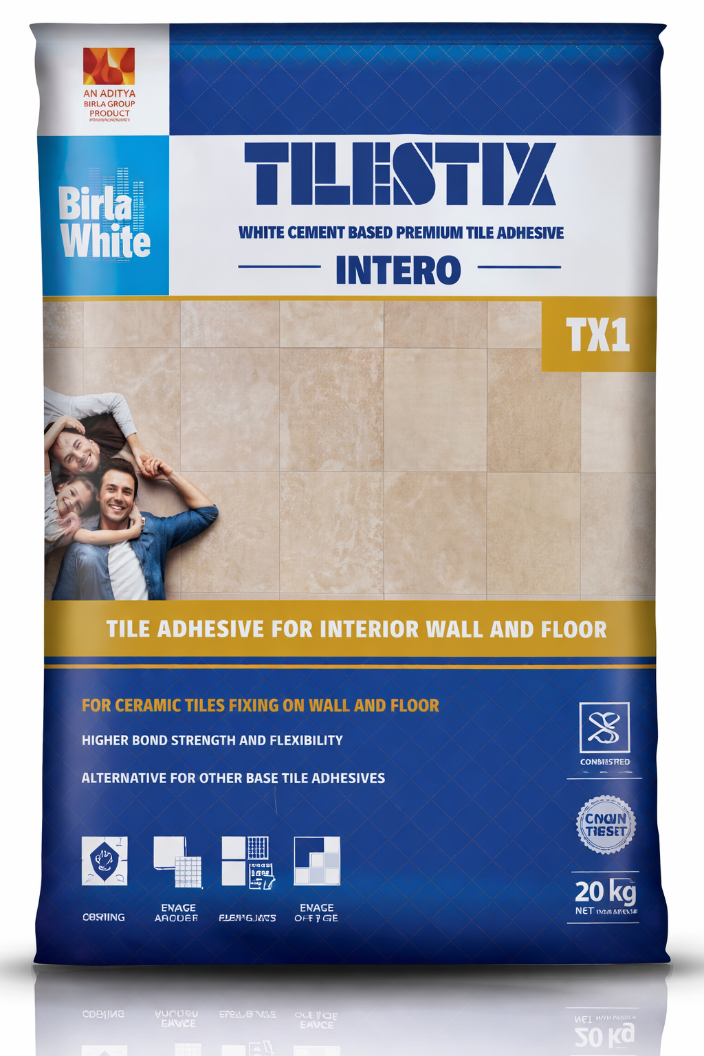 This high-performance tile adhesive is a polymer-modified, white cement-based thin-set tile adhesive, specially designed for fixing ceramic tiles, glazed tiles, terracotta tiles, and small-size natural stones on interior surfaces.
